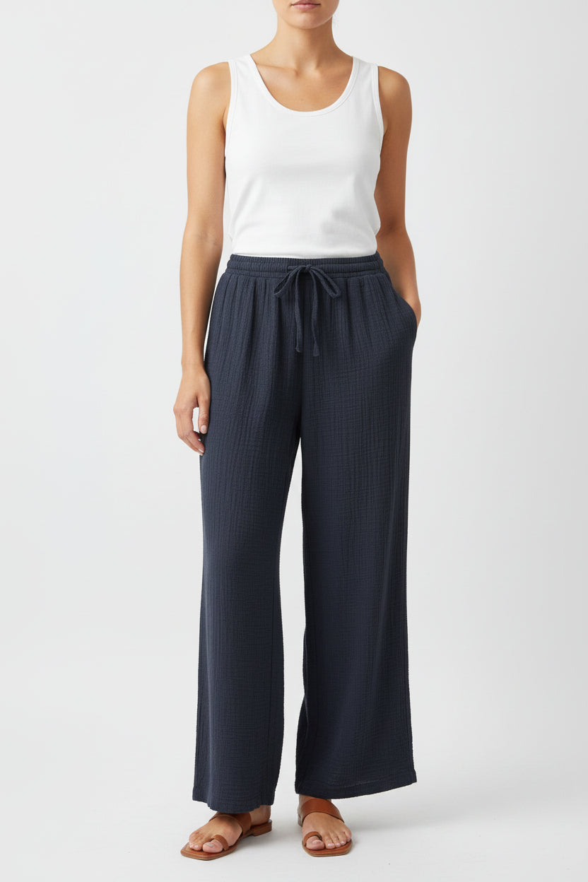 Cassie Cheesecloth Cotton Trousers (Navy)