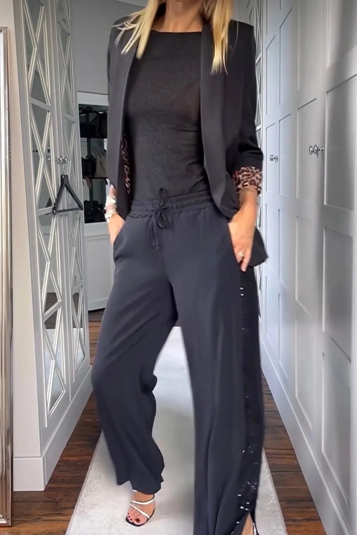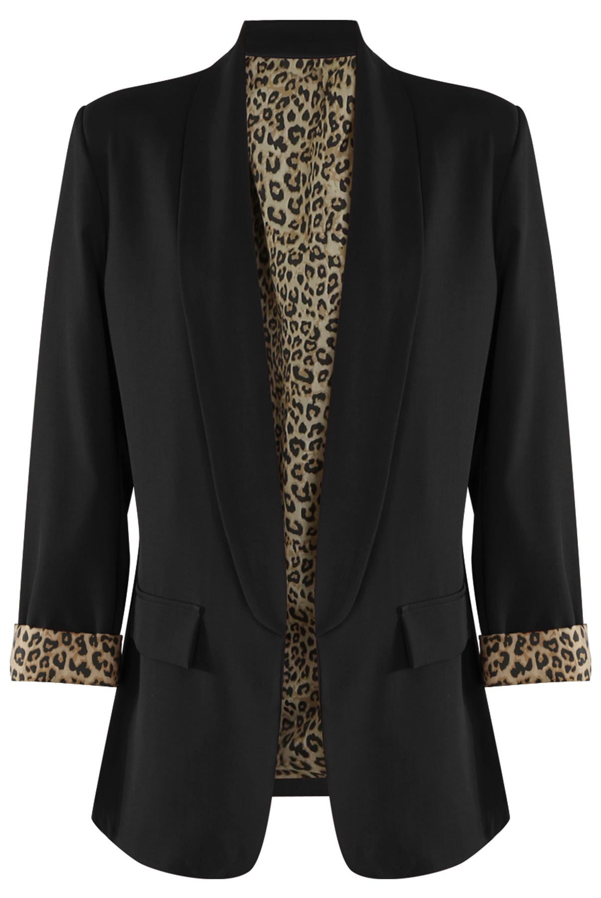 - Gorgeous leopard print lining with leopard print rolled sleeves