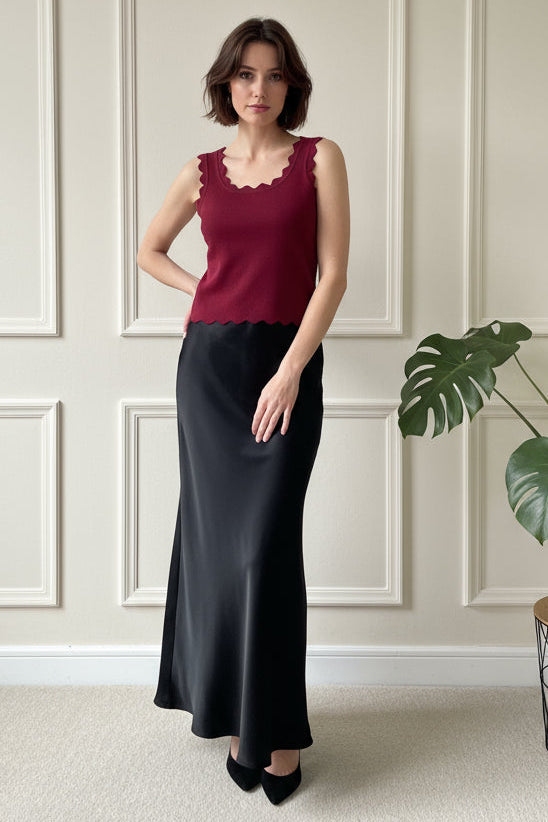 The Robyn Scallop Edge T Shirt offers a classic vest/tank neck design with delicate scalloped edges and slight stretch for a comfortable, flattering fit. Tailored for petite styling, it layers seamlessly under a blazer for polished workwear or pairs effortlessly with denim for casual everyday looks. This versatile top combines subtle detailing with practical wearability.