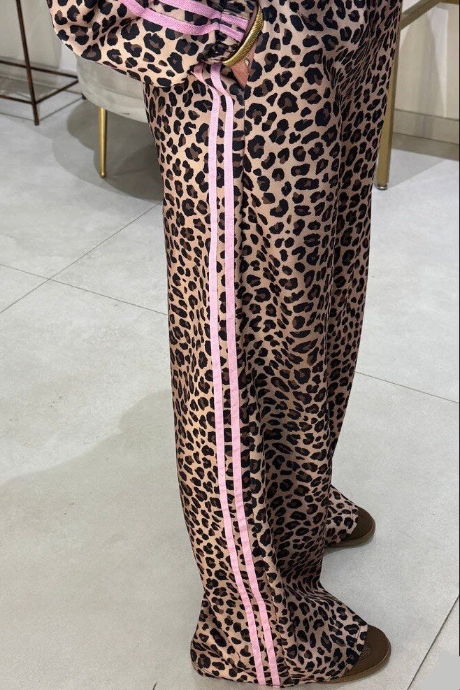 Sienna Leopard Print Side Stripe Wide Leg Joggers (Pink)